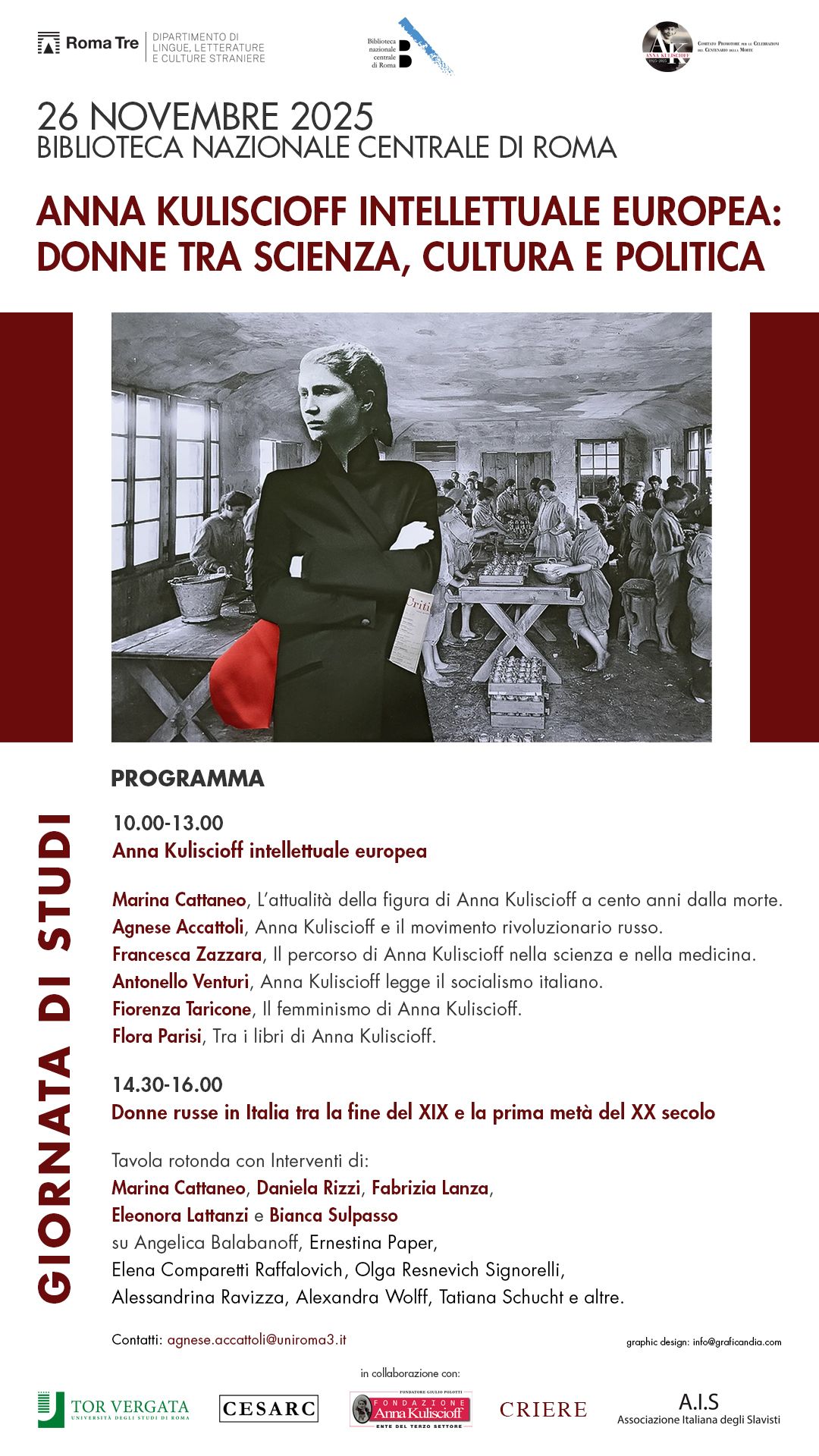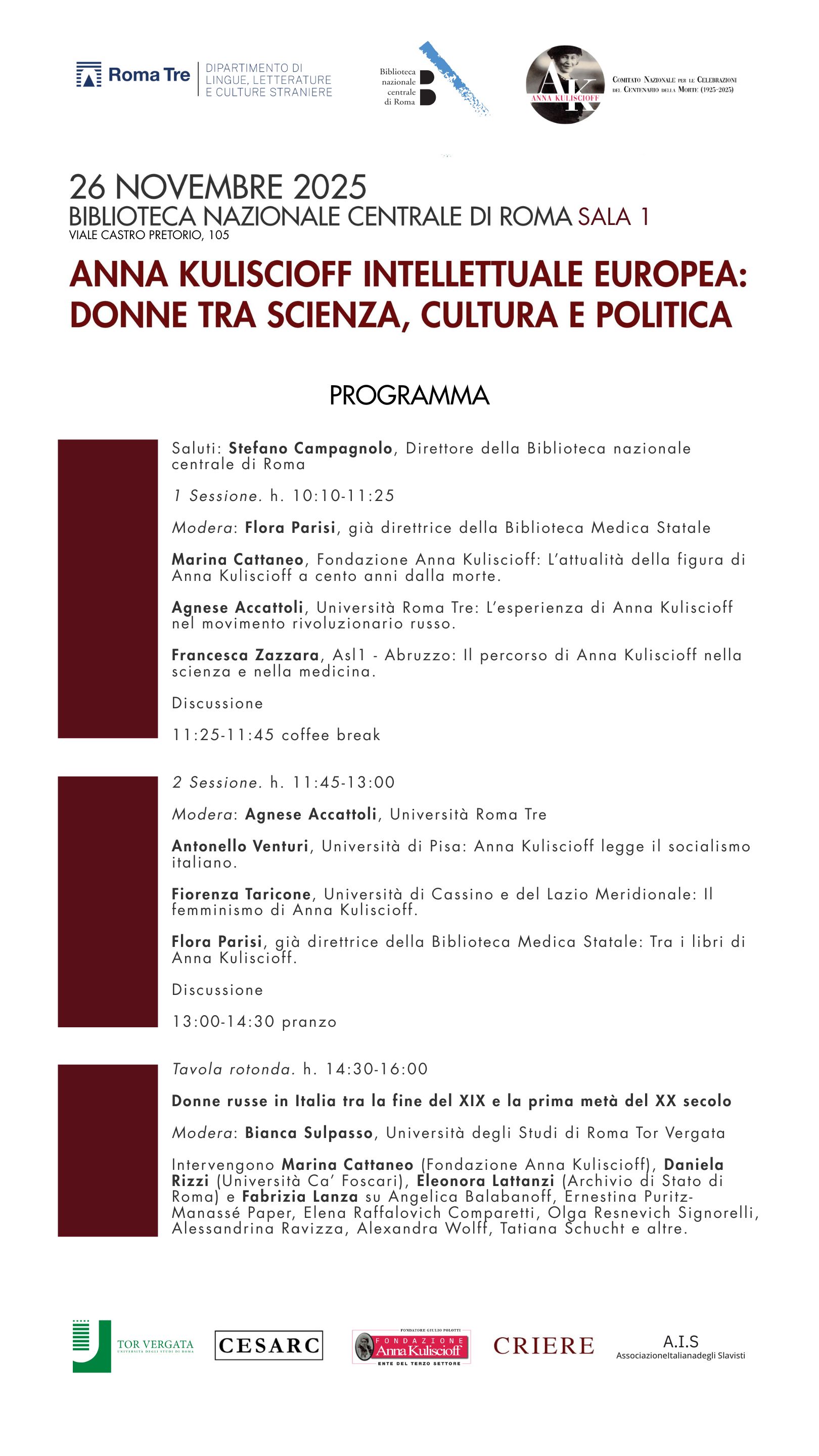 Anna kuliscioff intellettuale europea: donne tra scienza, cultura e politica 26 novembre 2025, dalle ore 10.00 Sala 1, Biblioteca nazionale centrale |